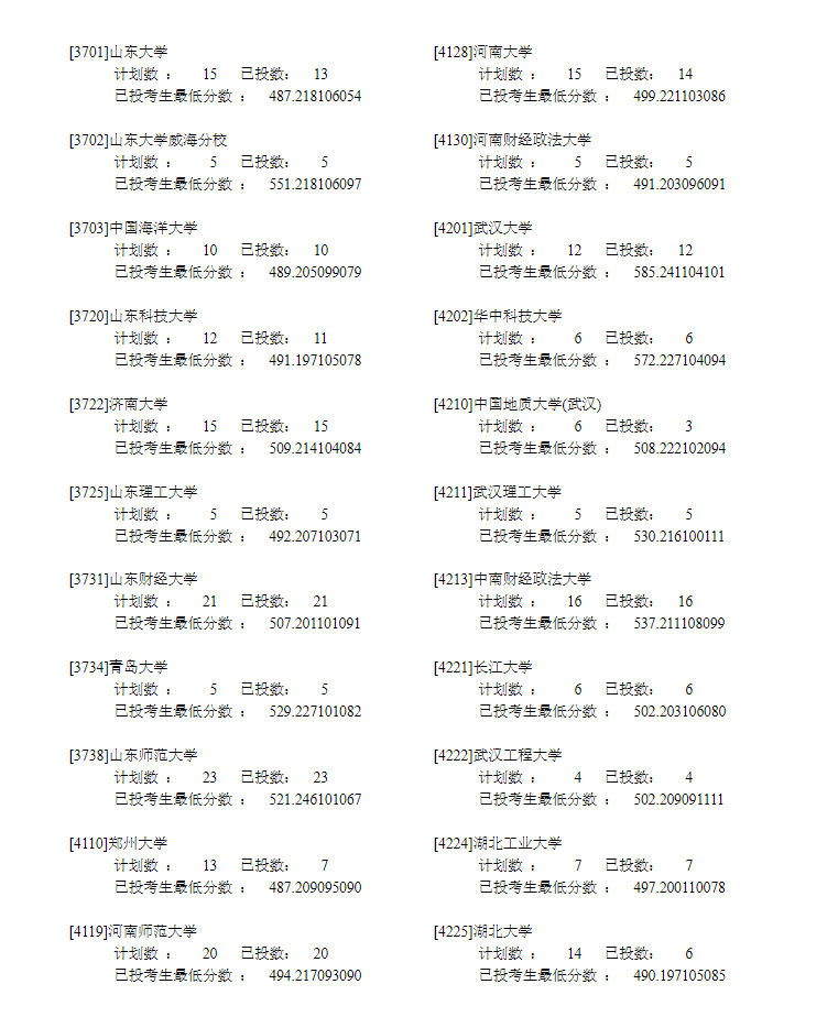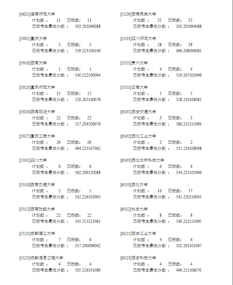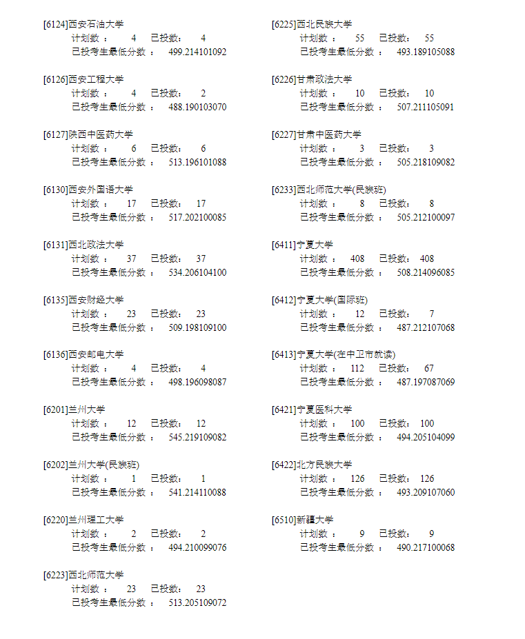 宁夏2022年普通高校招生**批录取院校本科文史类投档信息