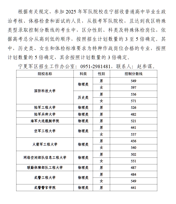 2025年军队院校在宁招收普通高中毕业生政治考核、体格检查和面试控制分数线公告